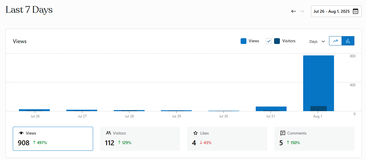 While the spike in engagement is ironic, I’ve disabled ratings for now. I don’t write for stars or approval. I write to express, reflect, and maybe challenge a few ideas along the way.
